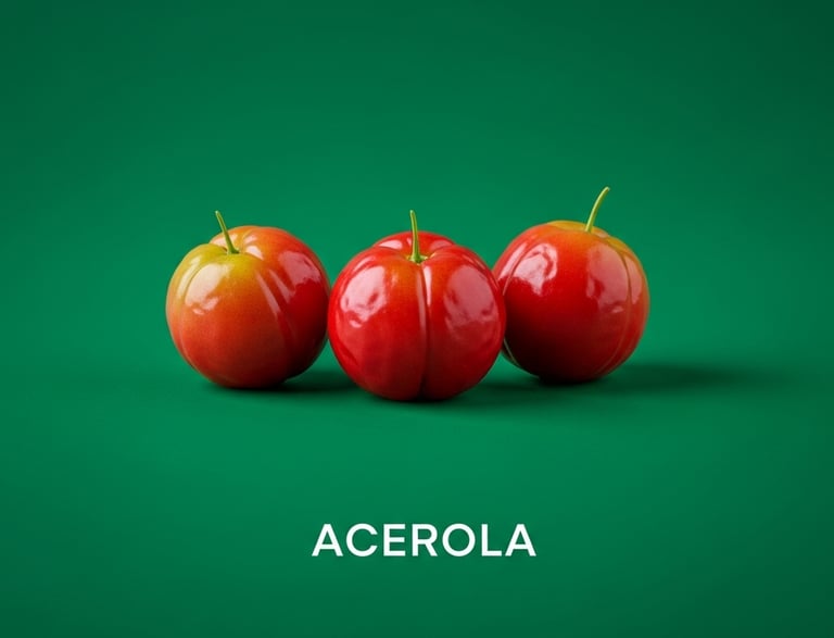 Curiosidades: Apenas 3 a 5 acerolas médias (cerca de 50g) podem fornecer muito mais do que 100% da necessidade diária de vitamina C para um adulto.