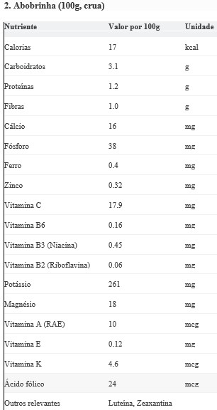 Sugestão: Pode ser grelhada, assada, cozida, em sopas, saladas, "espaguete" de abobrinha ou adicionada a refogados. Ótima para consumo em refeições principais.