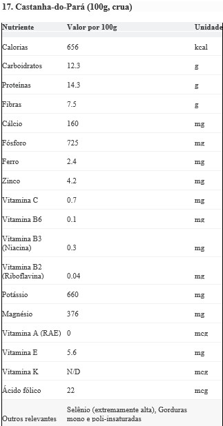 Sugestão: Consumir 1 a 2 unidades por dia como um snack, para suprir a necessidade de selênio.