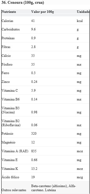 Sugestão: Consumir crua (ralada, em palitos), cozida, assada, em sopas, sucos ou como acompanhamento.