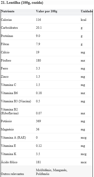 Lectinas: Crua, contém lectinas que são tóxicas. Sempre cozinhe a lentilha completamente.