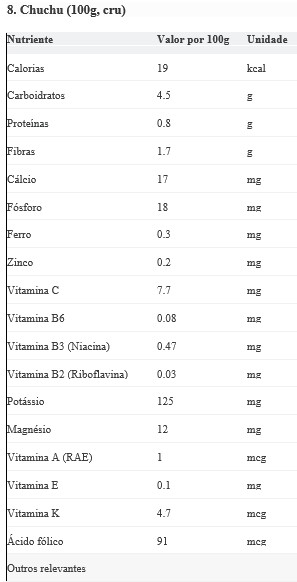Curiosidades: O chuchu é botanicamente um fruto da mesma família da abóbora e do pepino. É conhecido pela sua versatilidade e preço acessível.