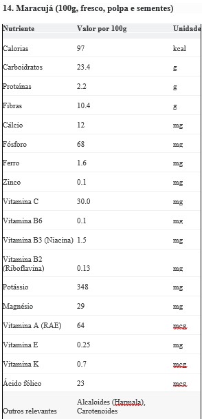 Curiosidades: As folhas e flores do maracujá são valorizadas por suas propriedades sedativas. Um chá feito com 2-3g de folhas secas por xícara é usado popularmente para reduzir a ansiedade e auxiliar no sono.