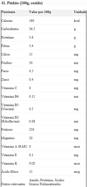 Principais Características: Semente comestível da araucária, com sabor único e textura farinhenta após o cozimento.