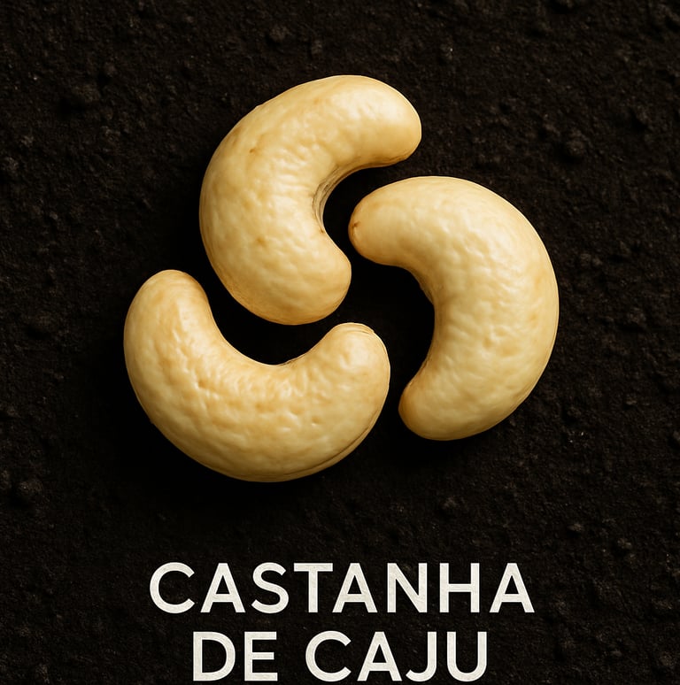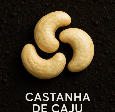 Curiosidades: O caju é o pseudofruto que se desenvolve antes da castanha (o verdadeiro fruto). As castanhas são processadas fora da casca para evitar o urushiol.