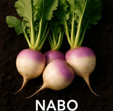 Curiosidades: As folhas do nabo (nabiça) são comestíveis e muito nutritivas, ricas em Vitamina K e Vitamina A.