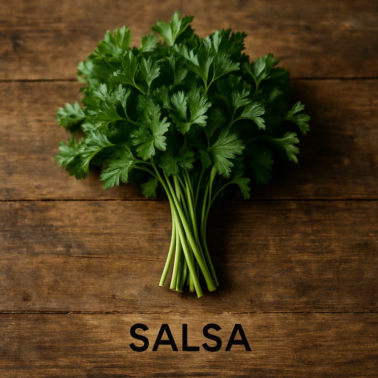 Curiosidades: A salsa é muito mais do que um simples enfeite; é uma potência nutricional. Mastigar salsa fresca pode ajudar a refrescar o hálito.
